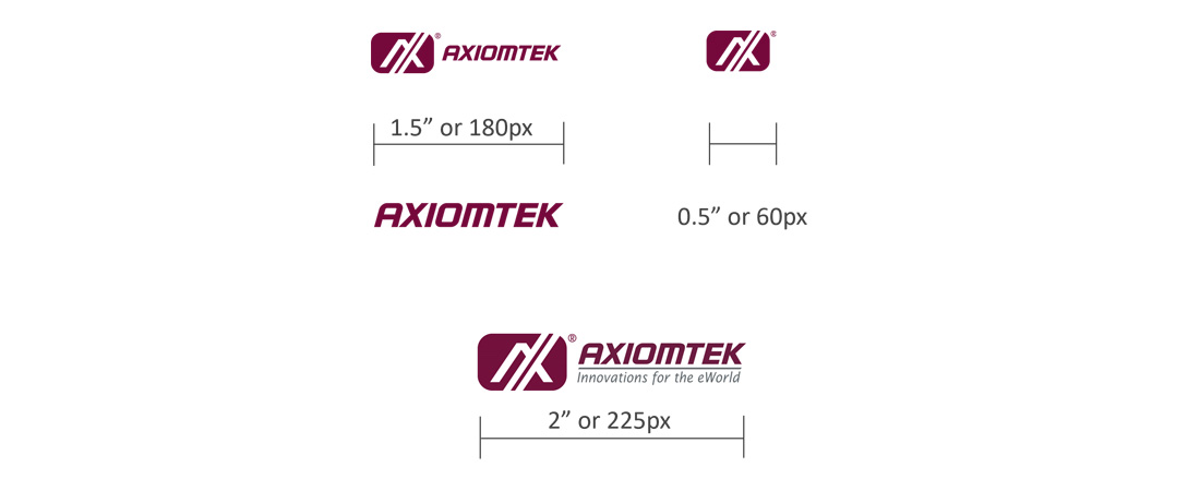 The Axiomtek logo shown on the right side is the smallest size allowed for general use. To ensure high quality representation, please do not use a smaller version than it.