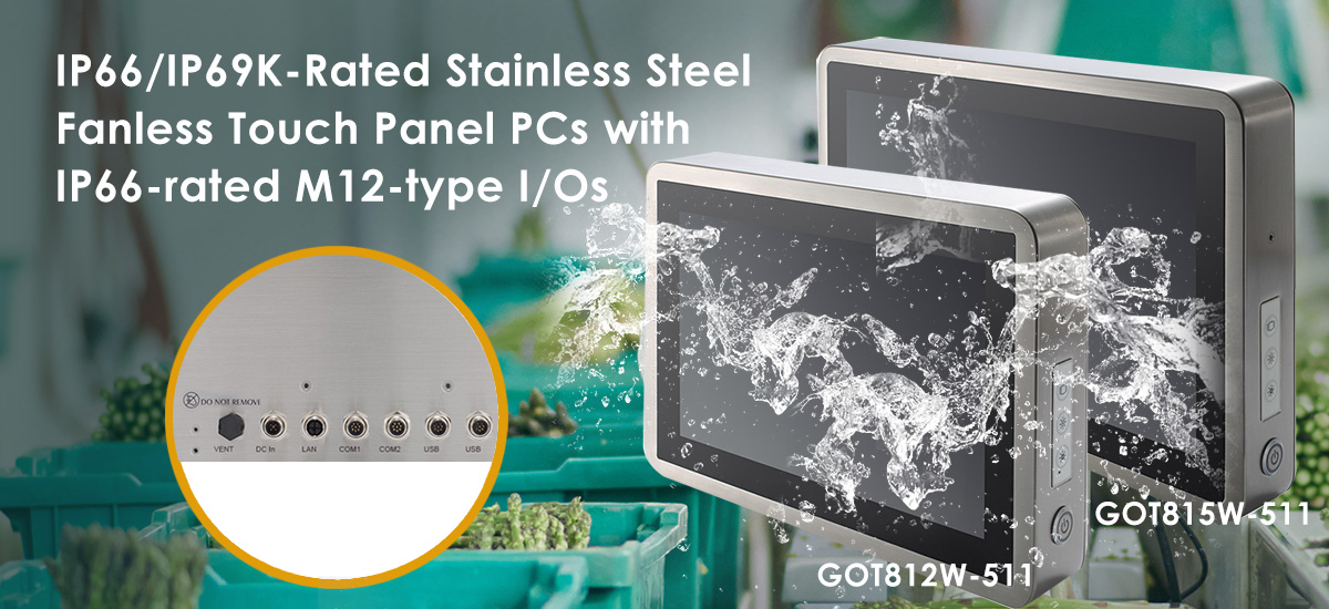 “The GOT815W-511 and GOT812W-511 have a full grade 316 stainless steel enclosure, IP66/IP69K ratings, wide temperatures, and wide voltage input are designed to serve the needs of diverse industrial applications in harsh environments. Besides, these ruggedized panel computers adopt a rounded corner design and a seamless flat front bezel, creating a sleek design that does not sacrifice durability,” said Wesley Lee, the product manager of IPS Product PM Division at Axiomtek.